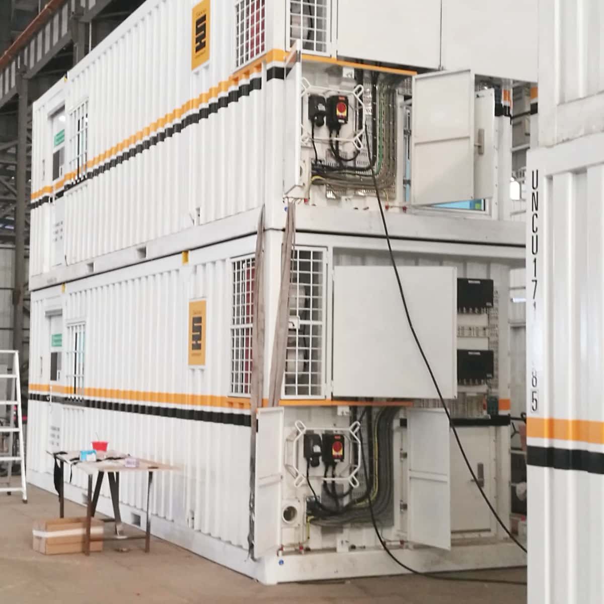 E-house is a kind of custom-designed prefabricated modularization outdoor facility room that can be applied to install a series of electrical and automation equipment. can be installed in a slide-track or wheel-mounted manner and can be used directly on site, minimizing installation, commissioning, and start-up time. It can be used as an alternative solution to traditional site building construction (concrete blocks, brick structures,or similar materials).